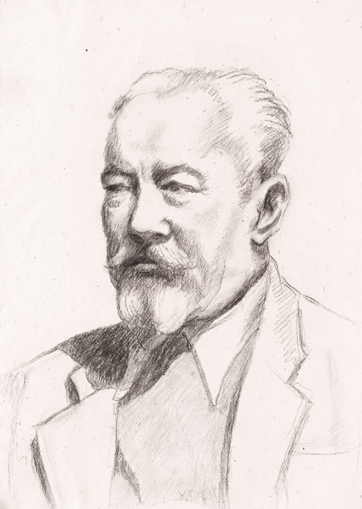 Cărbune pe hârtie; 54×39 cm; cca. 1925; Nr. inv. 3932 Compoziție pe verticală reprezentând portretul-bust al lui Teodorescu Bădia din semiprofil stânga. El are chipul inexpresiv cu ochii ușor mijiți, poartă barbă și mustață, păr cărunt și ușoară calviție. Poartă cămașă albă, pulover și sacou de culoare deschisă.
