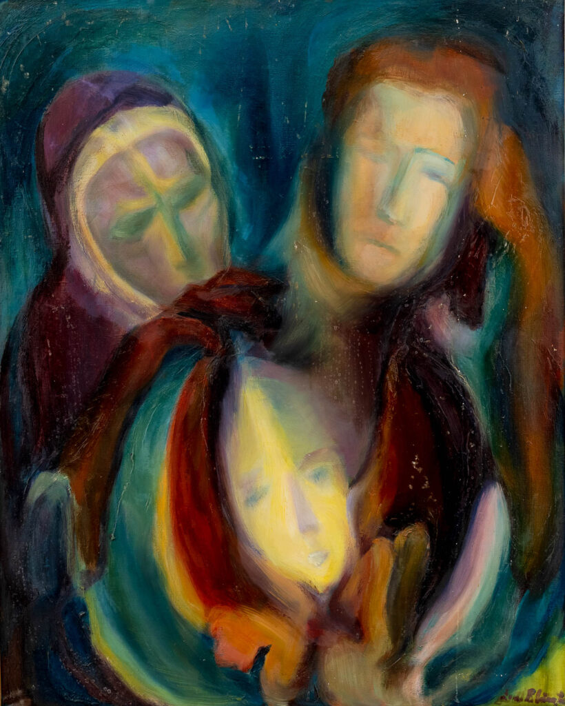 Ulei pe pânză; 80×100 cm; cca. 1974-1989; Nr. inv. 3833 Compoziție verticală. Trei chipuri de femei sugerând trei vârste. Figuri neindividualizate, idealizate. Semnat dreapta jos cu roșu; Zina Blănuță. Semnat și datatdreapta jos cu alb vernis: Zina Blănuță / 1974.