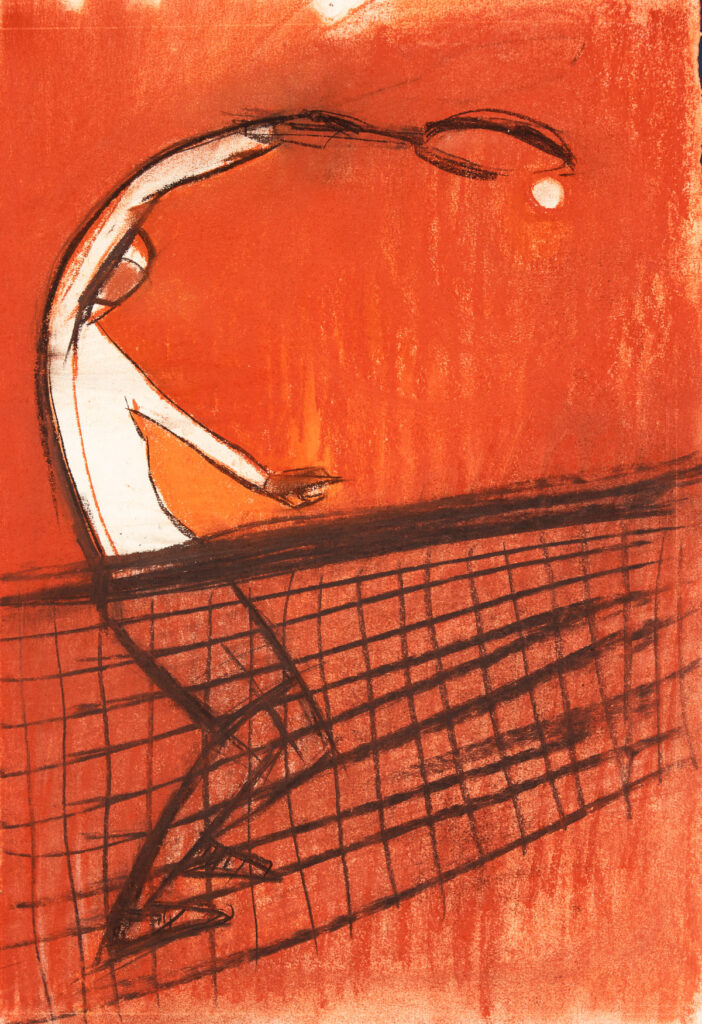 O pictură minimalistă, conceptuală; subiectul pare acoperit, șters, anulat; gestul cald, greu, discret.