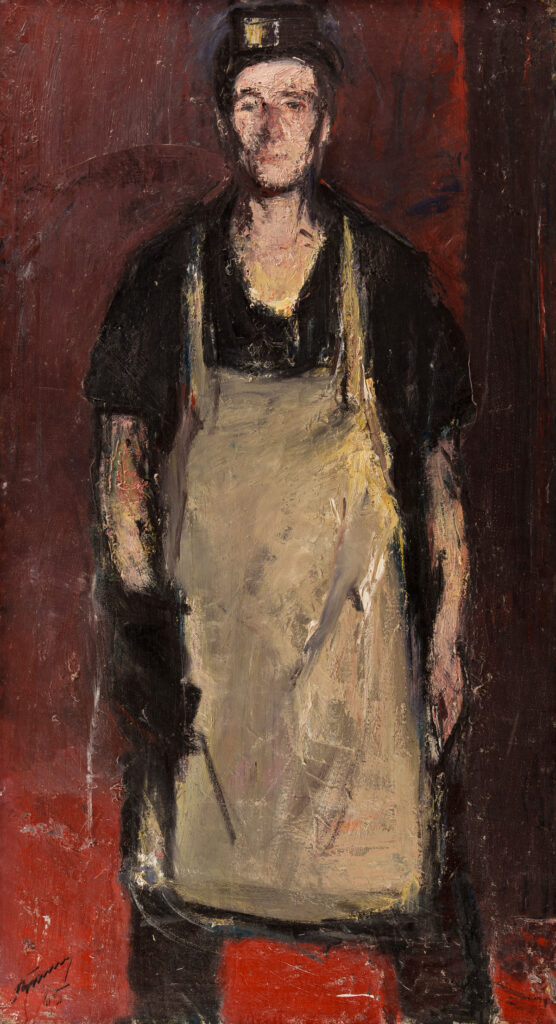 Ce trebuie să ne surprindă la muncitorul lui Mattis-Teutsch este că se odihnește – Agamben ar fi spus că e inoperativ, că de aici pleacă dialectica – prin contrast cu funcția sa de operator activ al unei noi societăți emancipate. Pictura, privită atent, ne indică formele de avangardă expresionistă și constructivistă, care se ascund în spatele vigurosului realism socialist. Doar prin sesizarea contradicțiilor așezate formal în fața privitorului – muncitorul în repaus, avangarda păstrată și anulată în realismul socialist, forma halucinantă și metafizică a copacilor în fața unui topor vânjos – linia privirii, care ar atârna indiferentă în fața unei platitudini, se deschide către ceea ce nu poate fi sesizat.