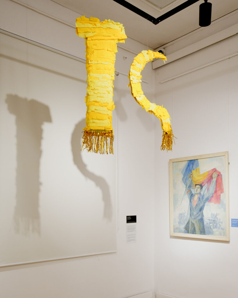 Intervențiile contemporane din expoziție invită privitorul să observe cum trecutul nu se termină brusc, ci continuă să reverbereze, uneori discret, alteori insistent, în imaginarul colectiv de azi. Fiecare detaliu ornamental sau gest repetitiv de astăzi poate fi citit în cheia unei memorii colective, arătând că, deși vremurile și contextul se schimbă, urmările unei epoci rămân sub alte înfățișări, așteptând să fie conștientizate și discutate.