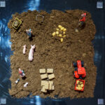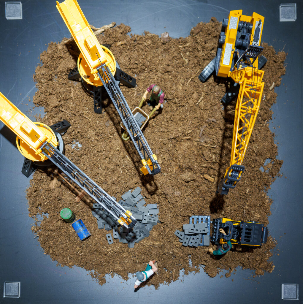 Lucrarea lui Horia Petruțiu, intitulată „Orizonturi noi”, redă ceea ce putem numi astăzi „fascinația betoanelor”, adică expresia vizuală a modernizării forțate pe care regimul totalitar comunist a așezat-o în galeria miturilor sale fondatoare. Blocurile abia conturate, ridicate dintr-un pământ ars de ocruri și brune, iar macaralele schițate ca niște siluete fragile proiectează iluzia unui viitor grandios, dar golit de orice urmă de umanitate. Abstracția controlată a compoziției transmite, în opinia mea, tensiunea dintre idealul impus și realitatea sufocantă a uniformizării. De aceea, pictura rămâne un „document” al epocii, dar devine și un avertisment asupra felului în care estetica dezvoltării forțate poate fi idealizată și astăzi, în discursul nostalgico-totalitar, sub forma unei false promisiuni de ordine și progres. În acest sens, „Orizonturi noi” capătă o actualitate critică, amintindu-ne de fragilitatea memoriei colective.